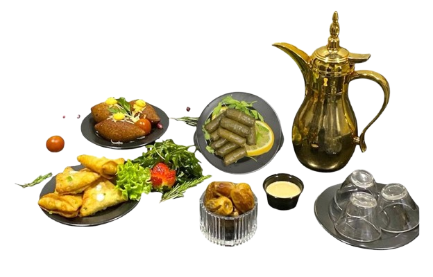 قهوة سعودية + تمر + طحينة + شوربة + سمبوسه + كبه + ورق عنب75 ريال