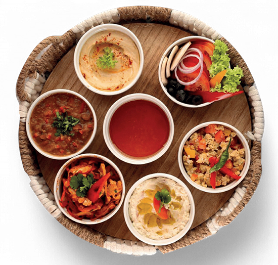 لبنة + فول + فلافل + حمص + شكشوكة + مكس أجبان + مكس سلطات60 ريال